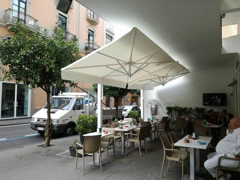 Ombrelloni di forma quadrata che permettono di orientare la copertura a 360° in modo da ottimizzare la zona d'ombra