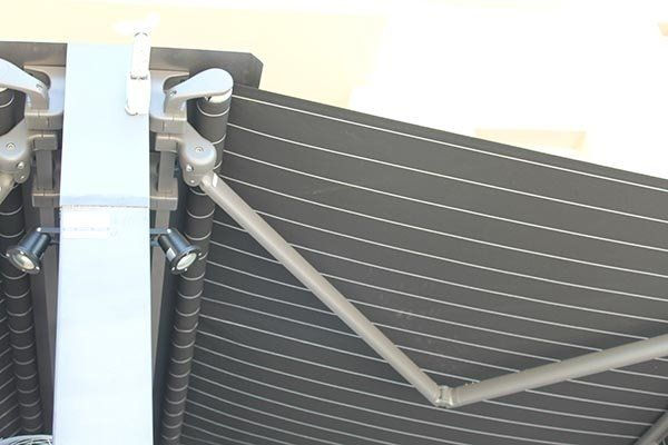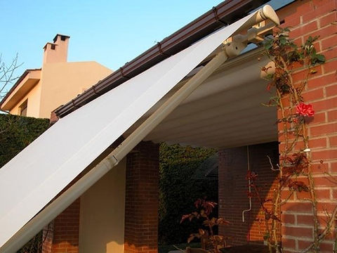 Il telo viene avvolto in un cassonetto e le speciali guide sono dotate di un sistema di ritenuta del telo: sono, quindi, una una vera e propria barriera contro le intemperie.